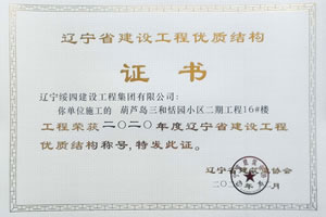“葫蘆島三和恬園小區(qū)二期工程16#樓”榮獲2020年度遼寧省建設(shè)工程優(yōu)質(zhì)結(jié)構(gòu)稱號
