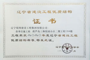 “葫蘆島三和恬園小區(qū)二期工程6#樓”榮獲2020年度遼寧省建設(shè)工程優(yōu)質(zhì)結(jié)構(gòu)稱(chēng)號(hào)