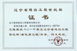 “綏中縣全民健身活動(dòng)中心”榮獲2016年度遼寧省建設(shè)工程世紀(jì)杯稱號(hào)