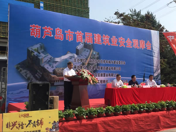 2017年9月13日,葫蘆島市首屆建筑業(yè)安全觀摩會在東北分公司葫蘆島興隆大家庭項目隆重舉行。葫蘆島市住房和城鄉(xiāng)建設(shè)委員會主任柴文海,各(縣)市區(qū)城建局專管安全副局長、安監(jiān)站站長,市區(qū)所有在建項目的建設(shè)、施工、監(jiān)理單位相關(guān)人員都參加了此次盛會。集團(tuán)董事長趙寶貴及羅忠海項目部、袁微項目部等相關(guān)人員也參加此次觀摩會。