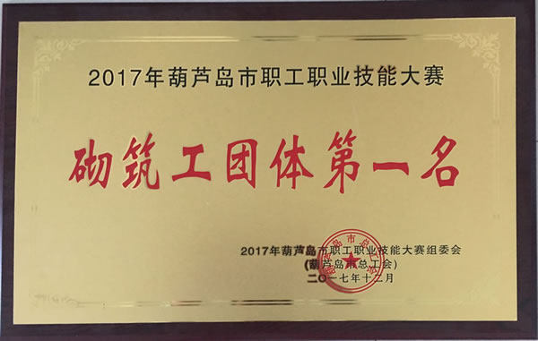 2017年12月7日,由葫蘆島市總工會主辦的“2017年葫蘆島市職工職業(yè)技能大賽頒獎(jiǎng)典禮”在葫蘆島市電視臺舉行。我集團(tuán)兩支代表隊(duì)不僅進(jìn)入了決賽階段,更是取得了喜人的成績:榮獲團(tuán)體一等獎(jiǎng),孟憲鐵和周玉偉分獲砌筑工種個(gè)人賽冠、亞軍,集團(tuán)榮獲優(yōu)秀組織獎(jiǎng)。