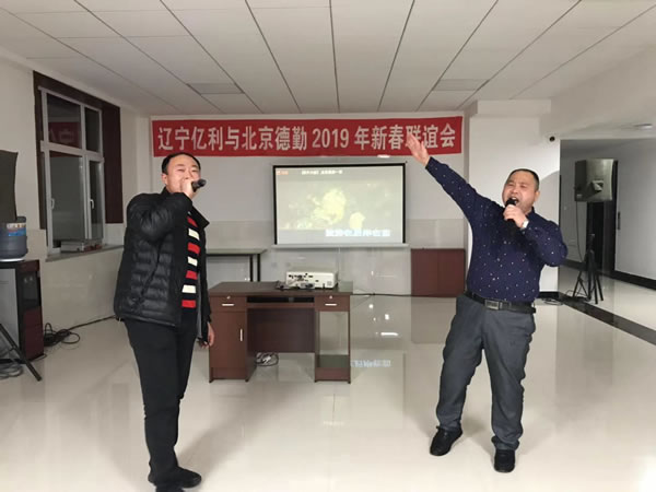值此新春佳節(jié)之際,作為東道主的我們?yōu)榱吮硎緦Φ虑诠就碌臒崃覛g迎與新春祝福,當(dāng)晚,在領(lǐng)導(dǎo)的安排下,我公司舉辦了一場“遼寧億利與北京德勤2019年新春聯(lián)誼會”。聯(lián)誼會上大家積極踴躍的表演才藝,機(jī)電設(shè)備部部長潘曉閣和機(jī)電設(shè)備部賀善強(qiáng)師傅高歌一首《眾人劃槳開大船》將整個聯(lián)誼會推上了高潮。