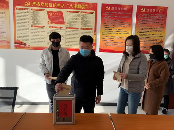 在此特殊情況下,黨支部書(shū)記趙寶貴接到通知后,第一時(shí)間通過(guò)微信群和電話向全體黨員傳達(dá)了《關(guān)于組織黨員自愿捐款支持新冠肺炎疫情防控工作的通知》精神,號(hào)召黨員充分發(fā)揮黨員模范帶頭作用,自愿捐款,以實(shí)際行動(dòng)支援疫情防控工作。通知發(fā)出后,支部書(shū)記帶頭捐款2萬(wàn)元人民幣,班子成員積極行動(dòng)作出表率,其他黨員也是積極響應(yīng),通過(guò)現(xiàn)場(chǎng)捐款和網(wǎng)上捐款形式,紛紛自愿捐款,以實(shí)際行動(dòng)踐行初心使命。