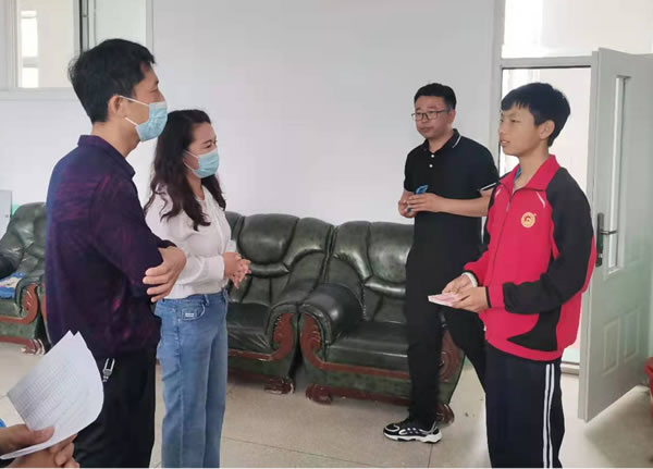 6月17日,在荒地鎮(zhèn)黨委、婦聯(lián)領(lǐng)導(dǎo)的陪同下,遼寧綏四建工集團(tuán)代表來到荒地鎮(zhèn)中學(xué),牽手六年級(jí)品學(xué)兼優(yōu)的貧困學(xué)生岳陽,為他送來2000元助學(xué)金,并表示大學(xué)畢業(yè)前每個(gè)學(xué)期他都會(huì)準(zhǔn)時(shí)收到這筆錢。