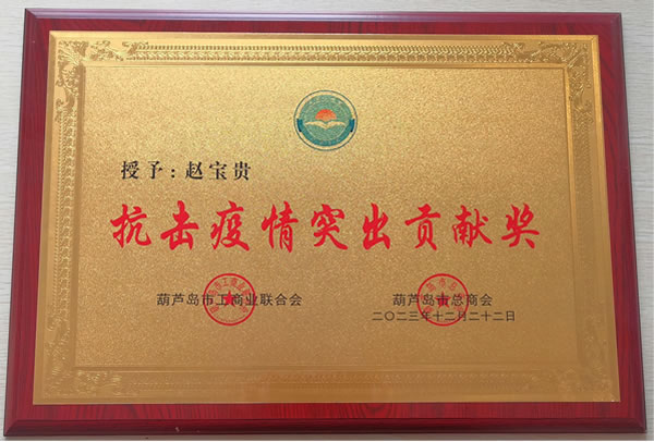2023年12月22日,葫蘆島市工商業(yè)聯(lián)合會、葫蘆島市總商會共同授予綏四建工集團董事長趙寶貴“抗擊疫情突出貢獻獎”。