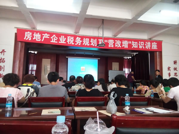 2015年7月29日下午13:30集團(tuán)選派主管會(huì)計(jì)康春芬同志參加了由遼寧省房地產(chǎn)協(xié)會(huì)舉辦的房地產(chǎn)開發(fā)企業(yè)“營改增”及稅務(wù)籌劃財(cái)稅講座學(xué)習(xí),主講嘉賓是李明俊,現(xiàn)任深圳市智慧源、中國房地產(chǎn)財(cái)稅咨詢網(wǎng)董事長,北大、清華、浙大等多家高校房地產(chǎn)總裁班兼職講師,是目前國內(nèi)為數(shù)不多的既有房地產(chǎn)公司工作背景又專注于房地產(chǎn)公司稅務(wù)研究的實(shí)戰(zhàn)專家。