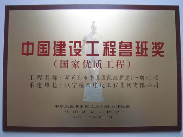2015年11月17日在北京釣魚臺國賓館召開了“2014~2015年度中國建設(shè)工程魯班獎(jiǎng)”表彰大會,集團(tuán)鐘雷副總經(jīng)理代表公司參加了此表彰大會,由遼寧綏四建工集團(tuán)承建的葫蘆島市中醫(yī)醫(yī)院改擴(kuò)建(一期)工程榮獲“2014~2015年度中國建設(shè)工程魯班獎(jiǎng)”獎(jiǎng)項(xiàng)。