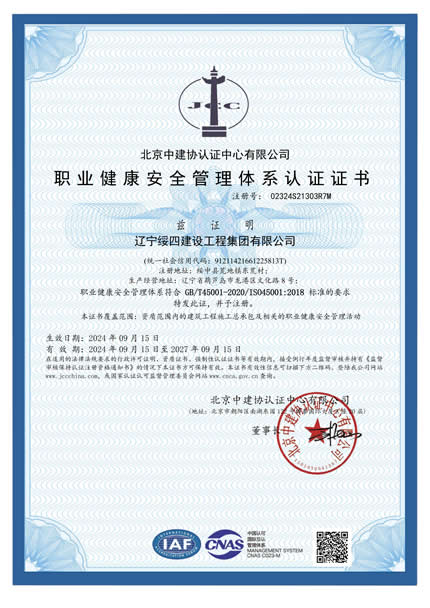 職業(yè)健康安全管理體系認(rèn)證證書