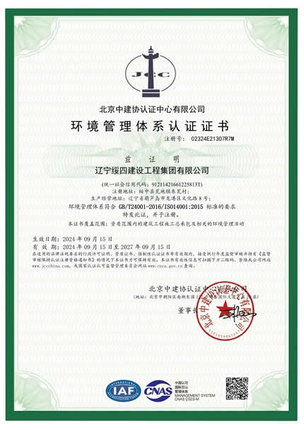 環(huán)境管理體系認(rèn)證證書