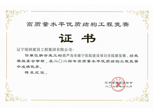 葫蘆島市康寧醫(yī)院建設(shè)項目住院康復(fù)樓被評為2024年高質(zhì)量水平優(yōu)質(zhì)結(jié)構(gòu)工程